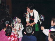 梅本春枝は、保母さんや幼稚園の先生など、お子さんに携わられる方や、リクリエーション団体の方などを対象にワークショップを行っています。 |